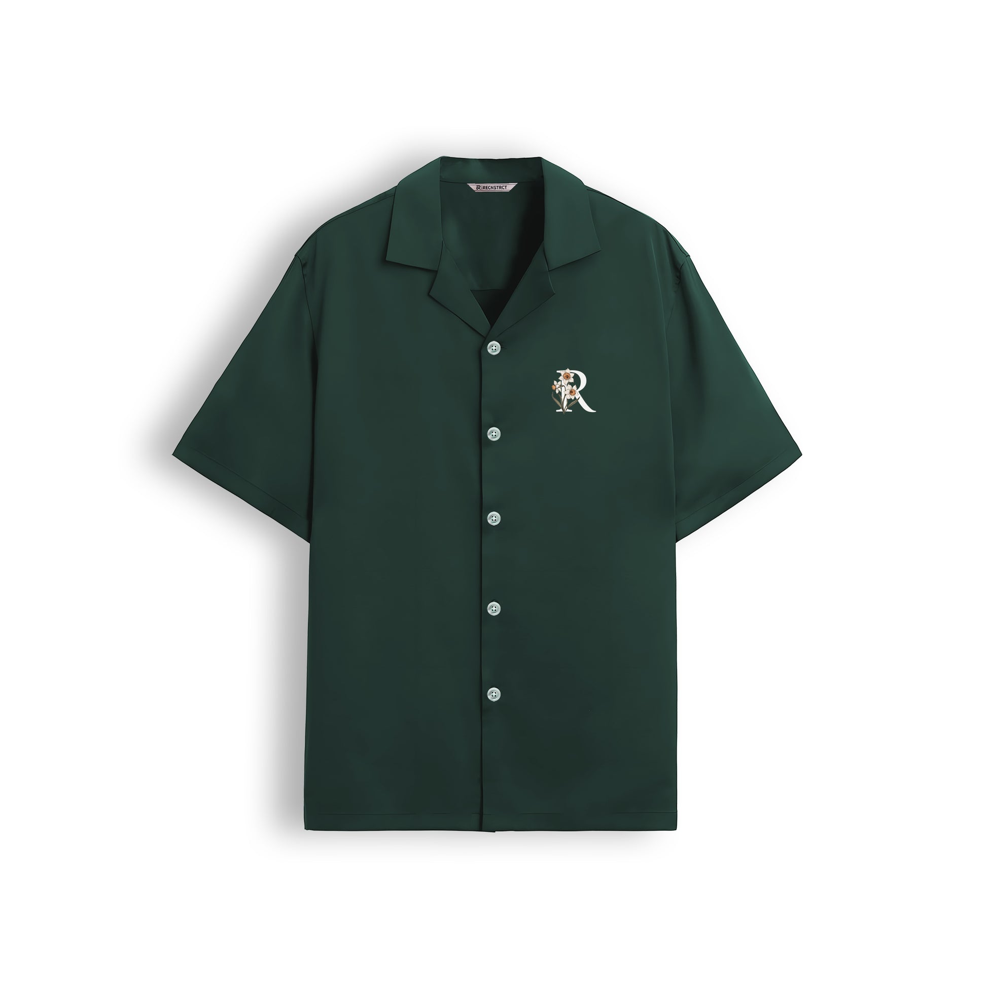Elevate your style with this DATEjust shirt. Crafted from luxurious 300 GSM Terry Rayon, this shirt features a camp collar and short sleeves for a relaxed yet sophisticated look. With a striking contrasting print on the back and a subtle brand initi on the front, it's the perfect blend of bold and understated. Complete with a classic button-up front for effortless charm.