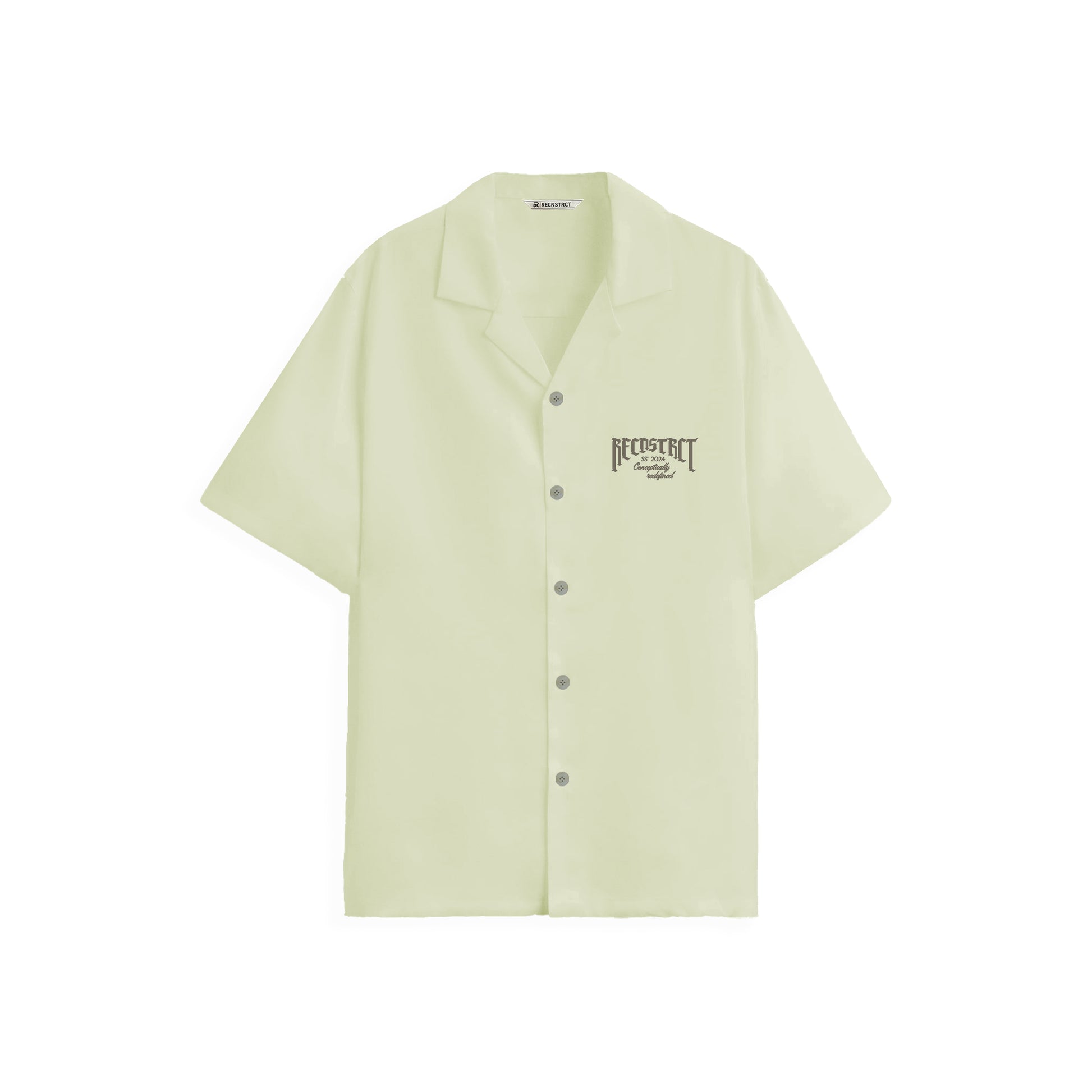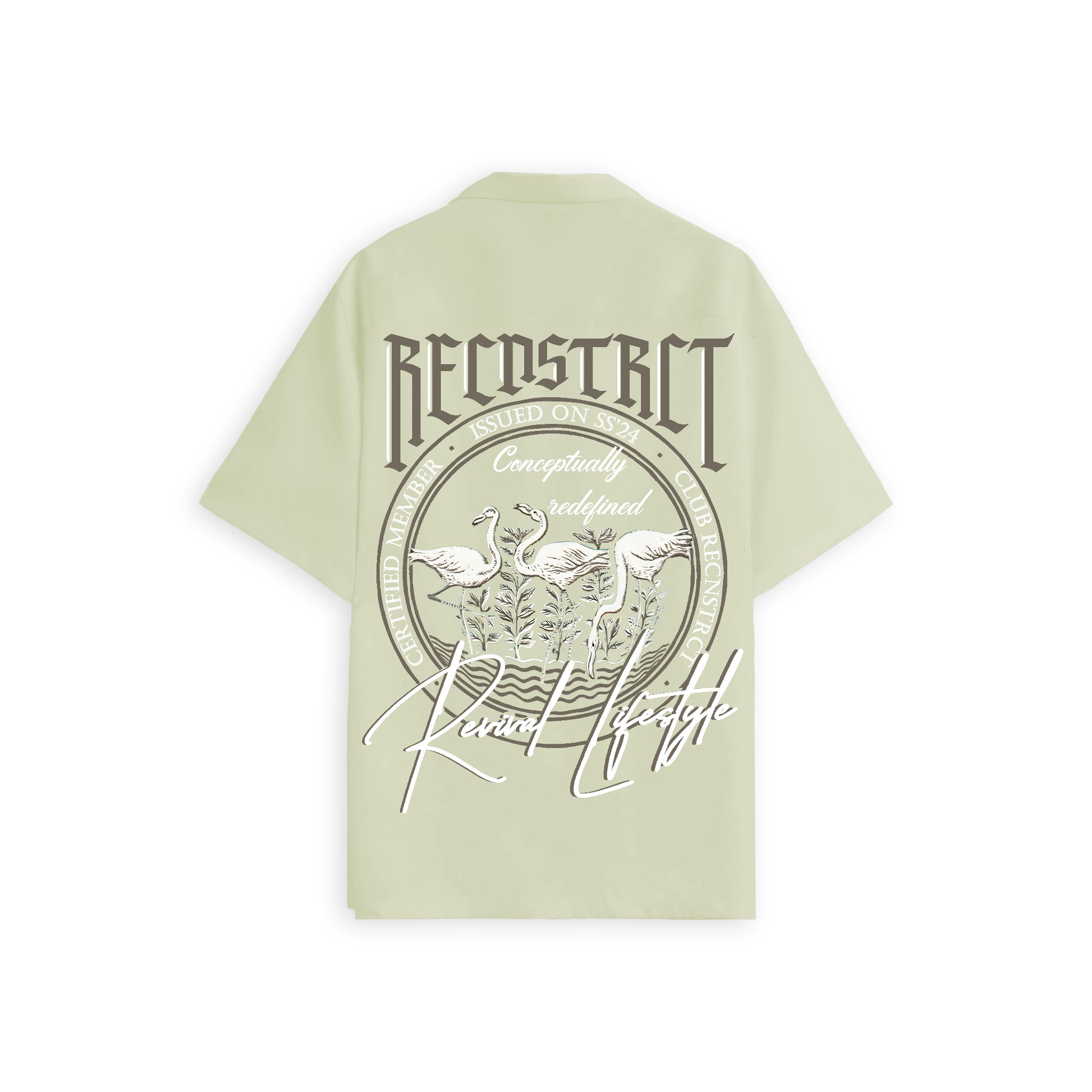 Oversized half-sleeves bowling shirt with CLUB RECNSTRCT Revival Lifestyle print on the front and the back. This shirt can be styled open or buttoned-up.