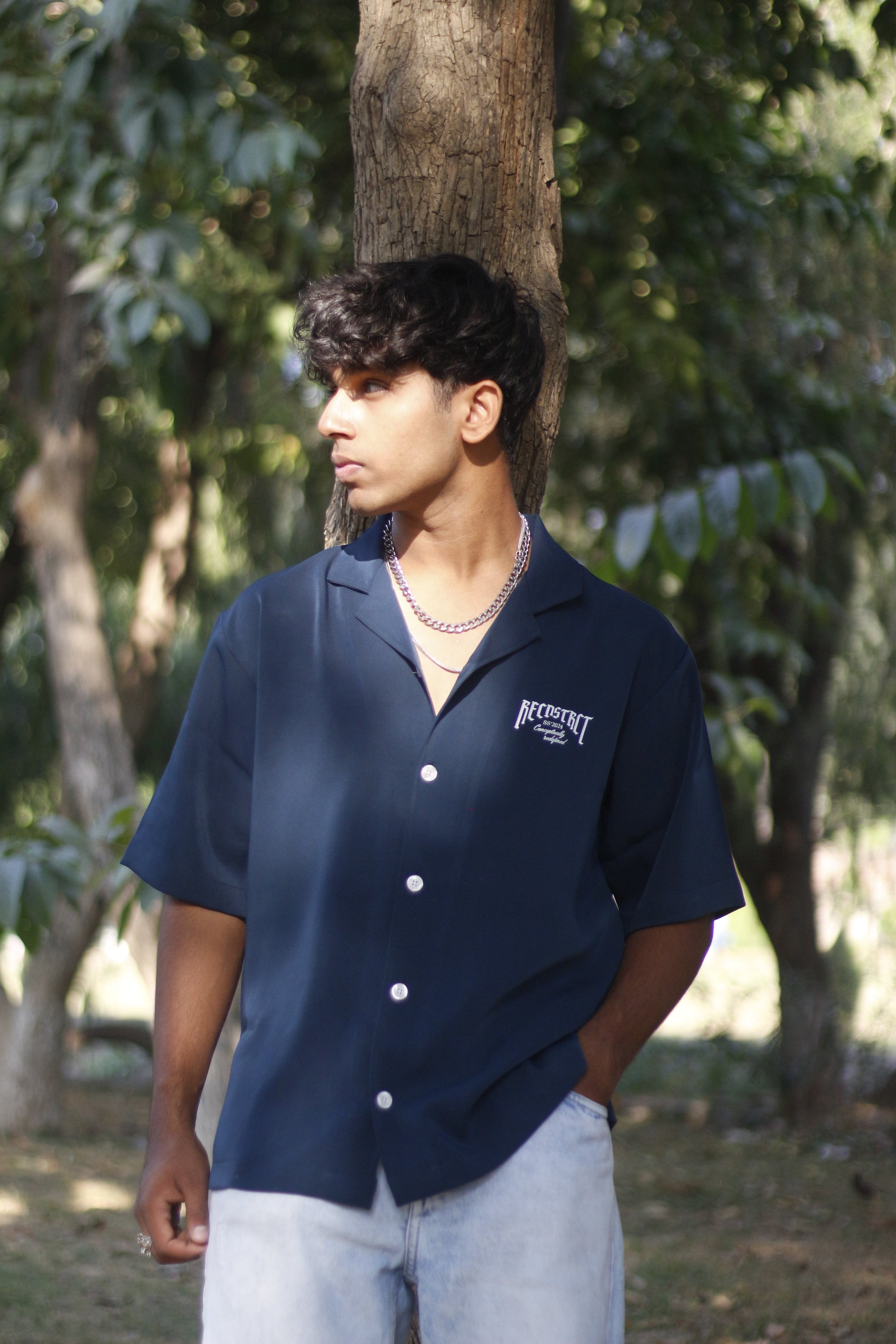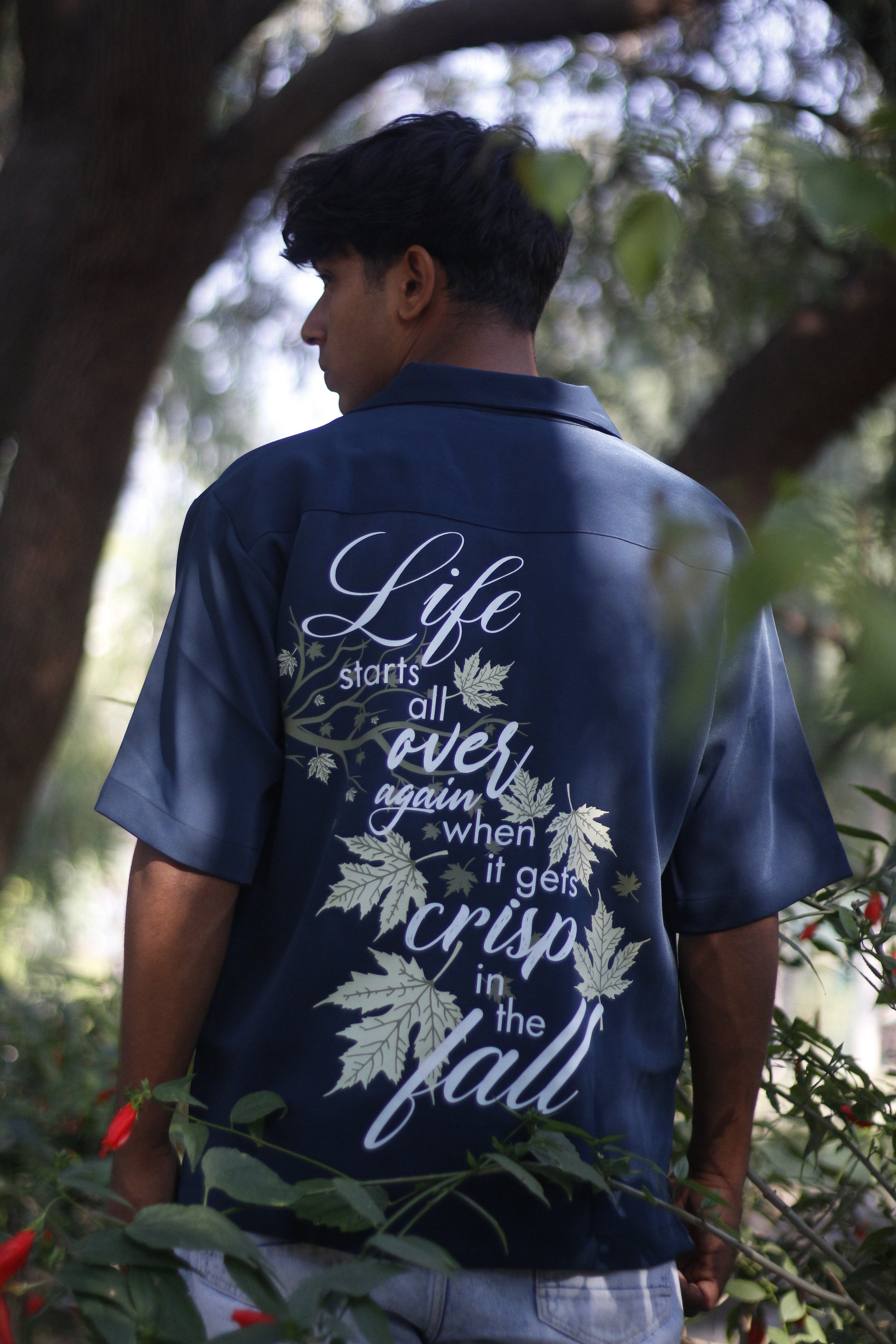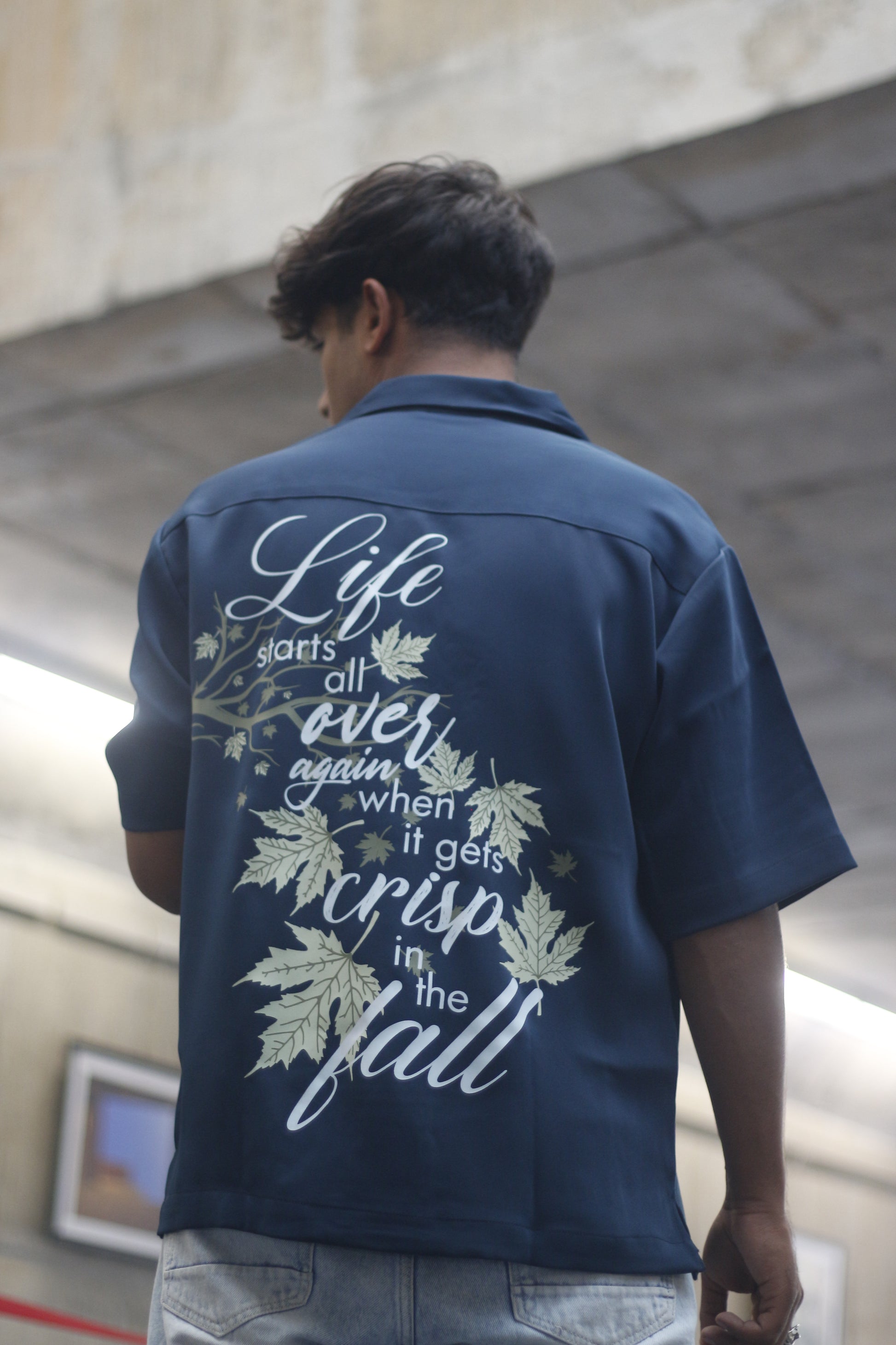Oversized half-sleeves bowling shirt with Contrasting print on the Back. This shirt can be styled open or buttoned-up.