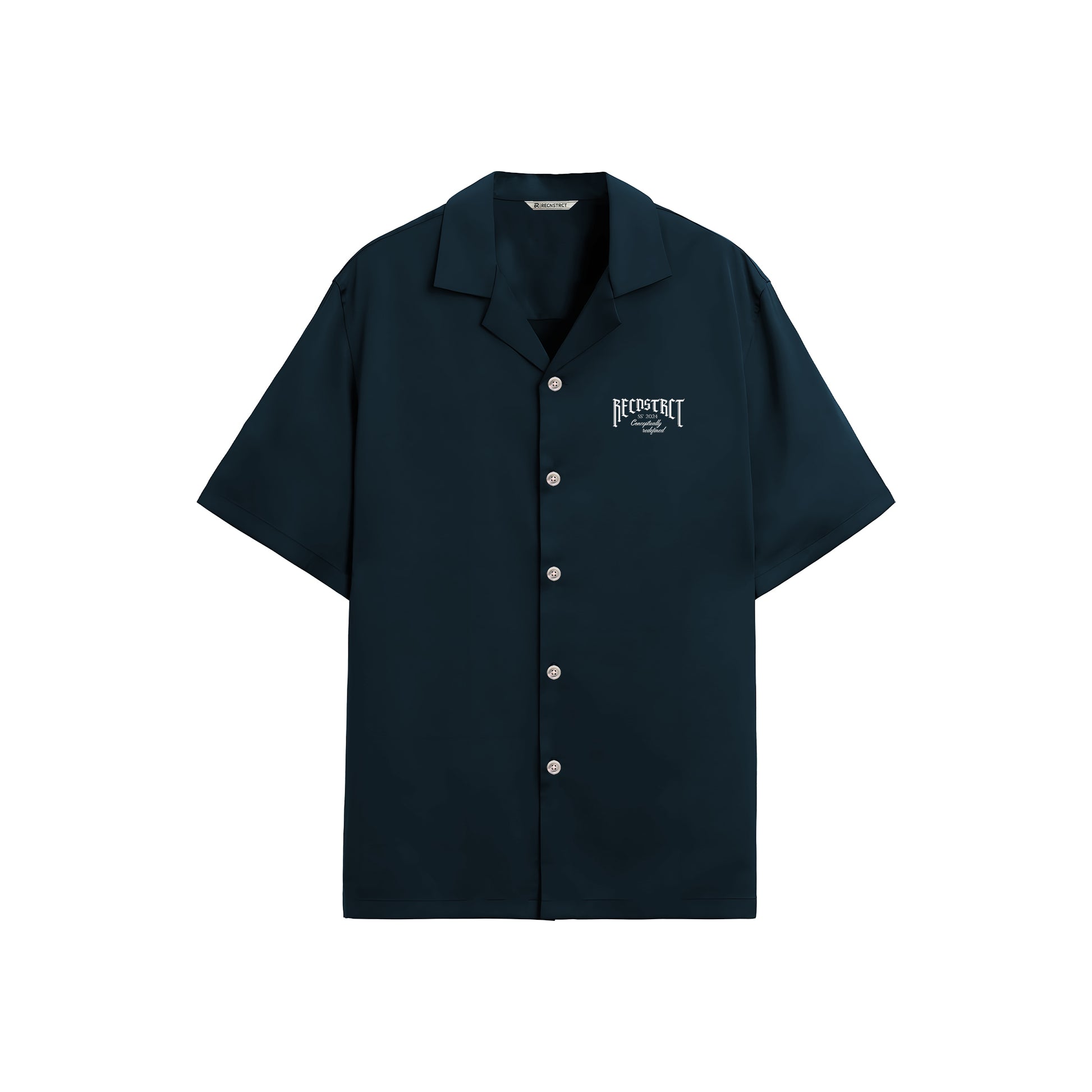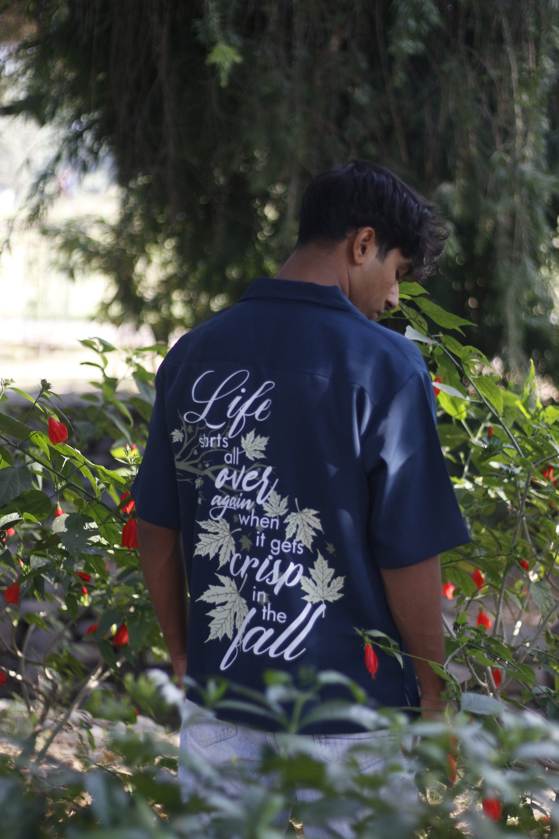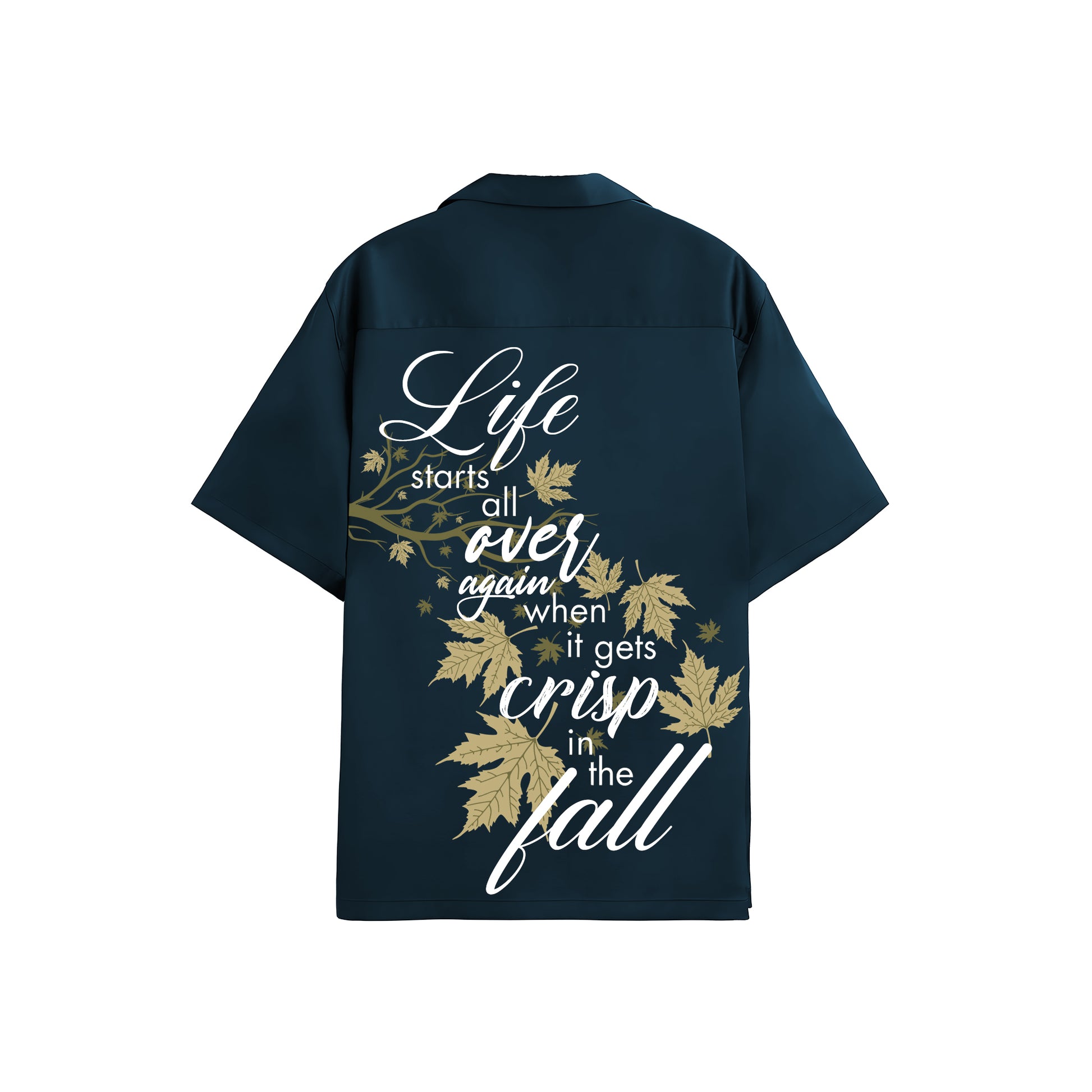 Oversized half-sleeves bowling shirt with Contrasting print on the Back. This shirt can be styled open or buttoned-up.