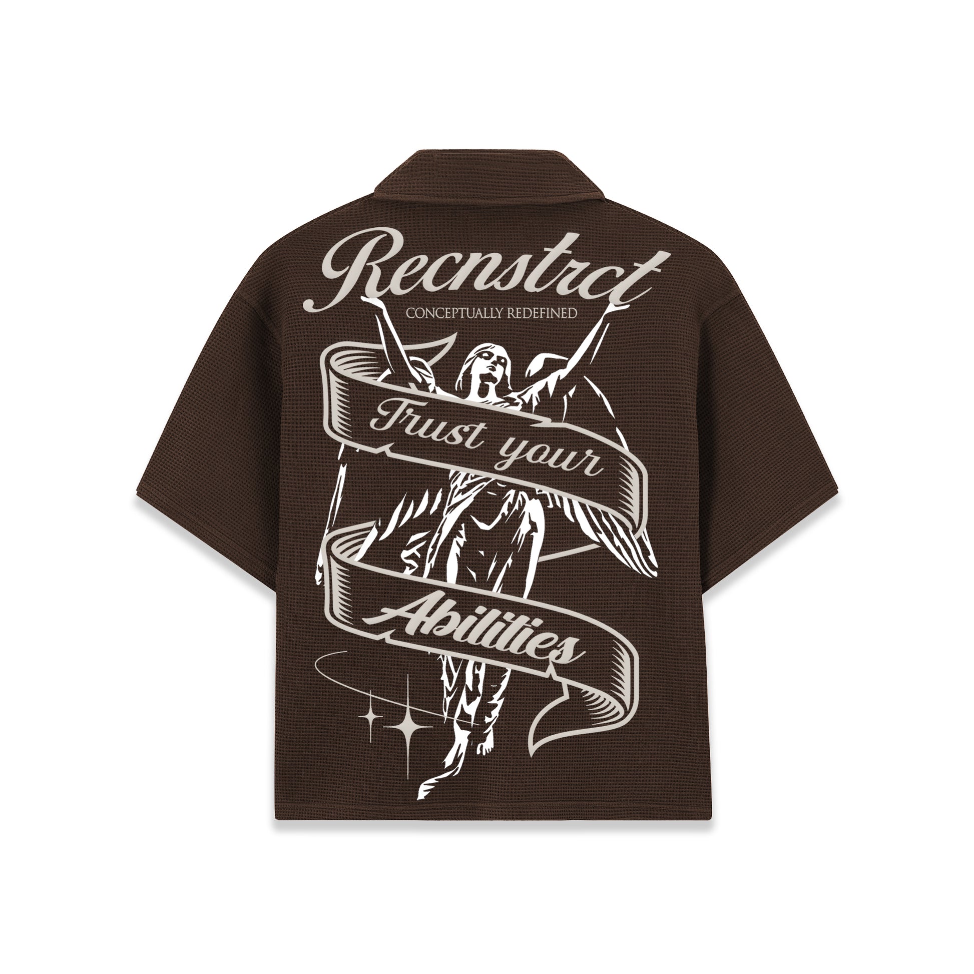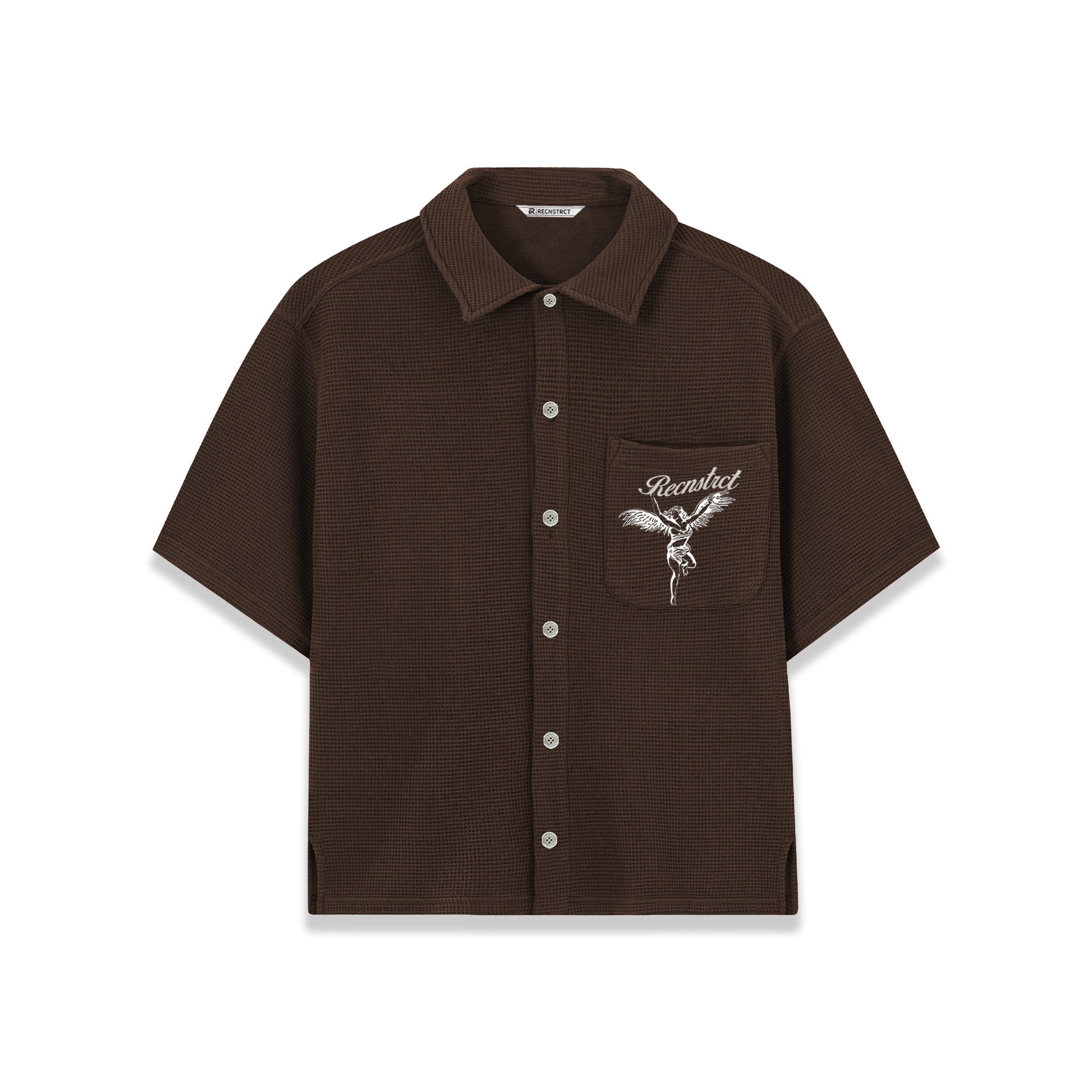 Waffle-Knit Textured Box-Fit shirt - Brown